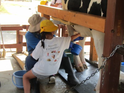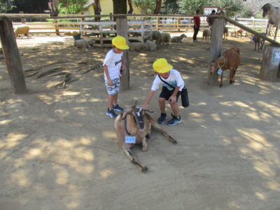 動物とふれあったり、乳搾り体験をしたりしました。また、友達と元気いっぱい仲良く遊んできました。